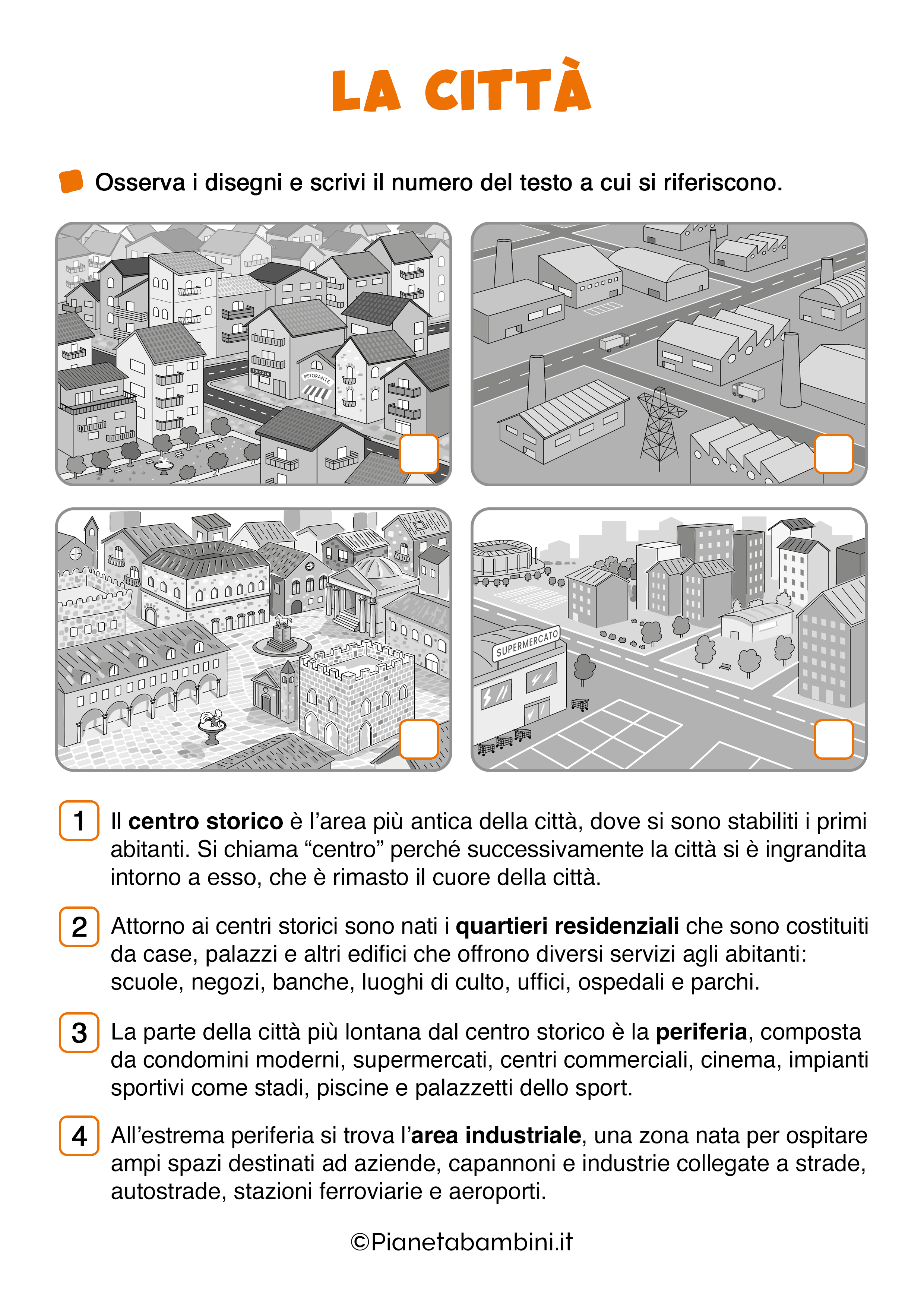 Le schede didattiche sulla città che qui vi presentiamo sono rivolte agli studenti che frequentano la classe terza della Scuola Primaria, potranno essere consultate online oppure stampate in maniera completamente gratuita.