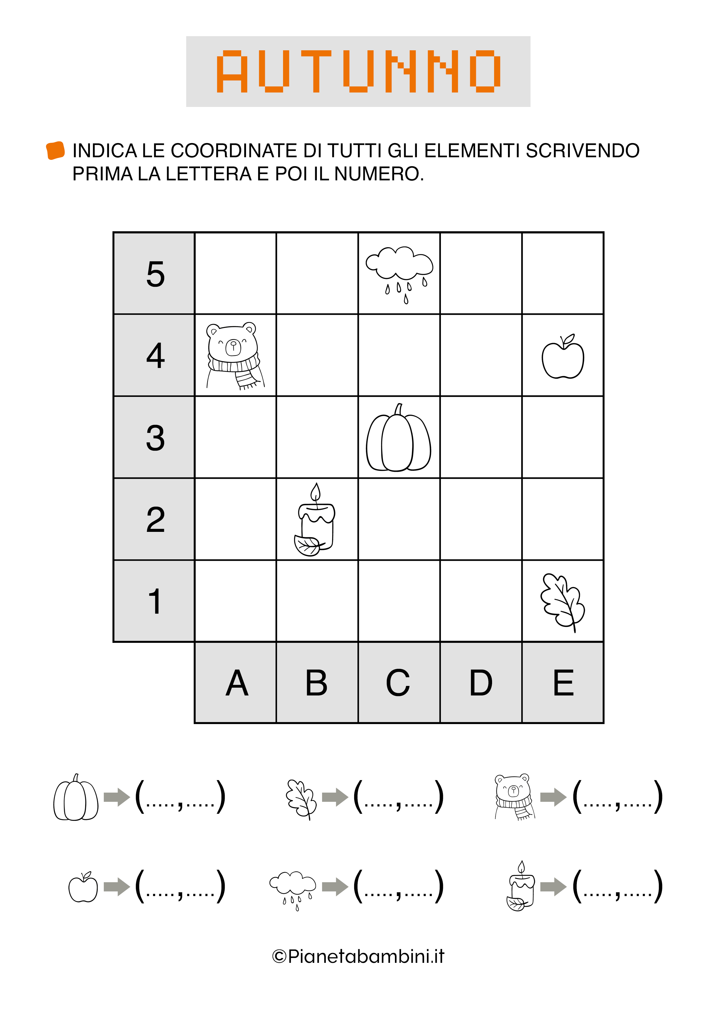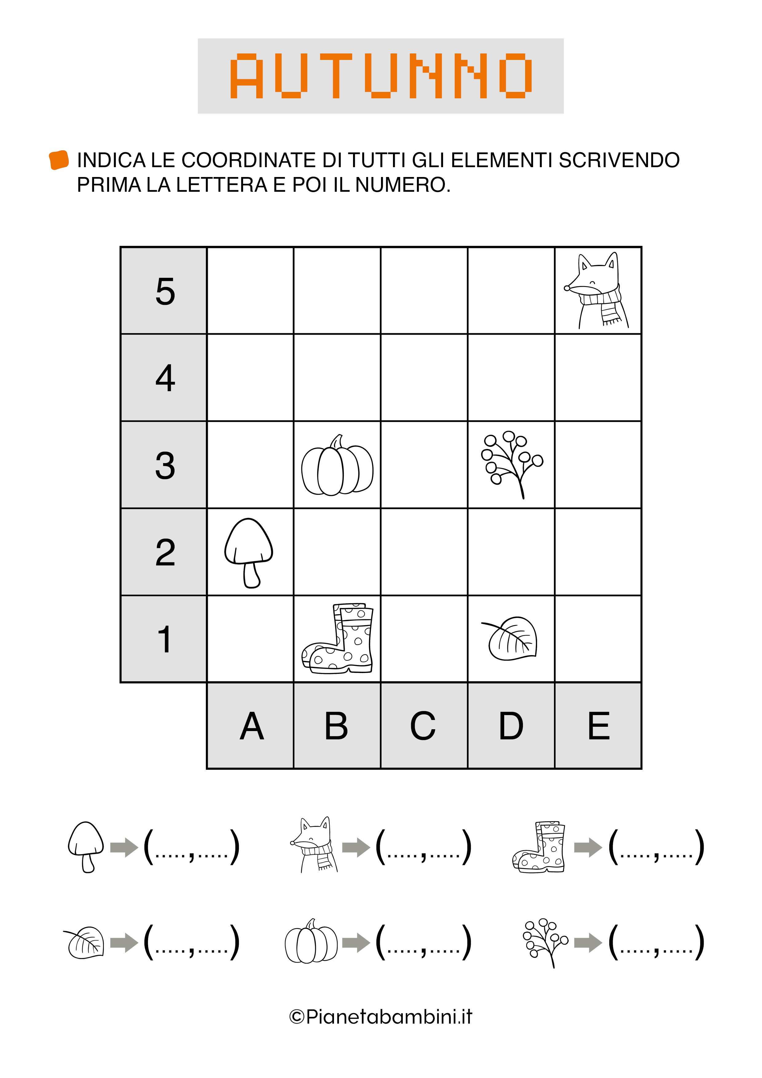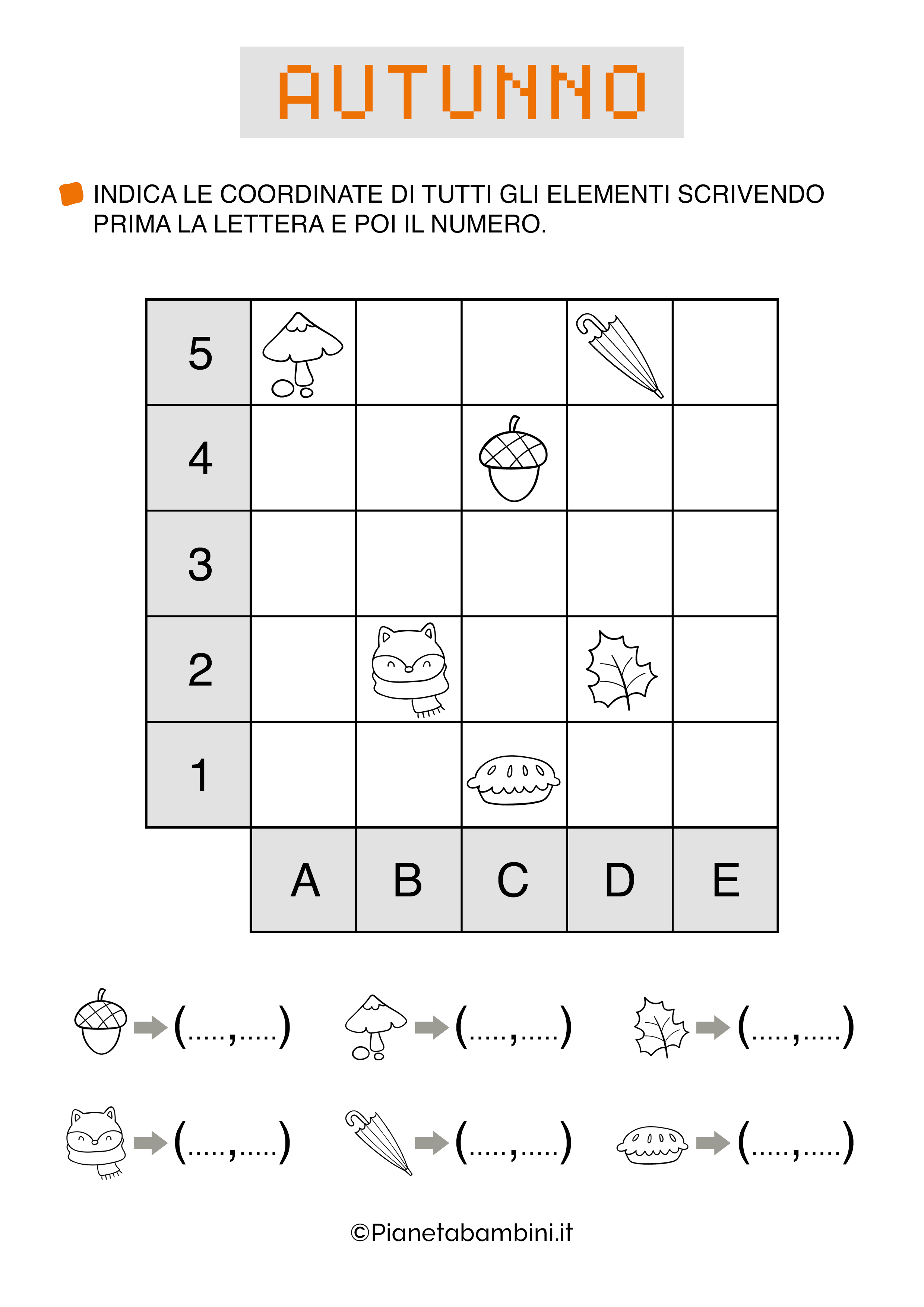 Proposti secondo un livello di difficoltà crescente, i vari esercizi di coding richiederanno di individuare e tracciare percorsi, definirli tramite dettagliate sequenze che li vedranno anche impegnati ad identificare le migliori soluzioni possibili. Altre schede invece sono dedicate alle coordinate con i vari elementi da individuare o disegnare su un reticolo. Il tutto è stato realizzato a tema autunnale e gli schemi vedono quindi protagonisti ricci, scoiattoli, volpi alle prese con la ricerca di cibo e scorte per l’inverno.