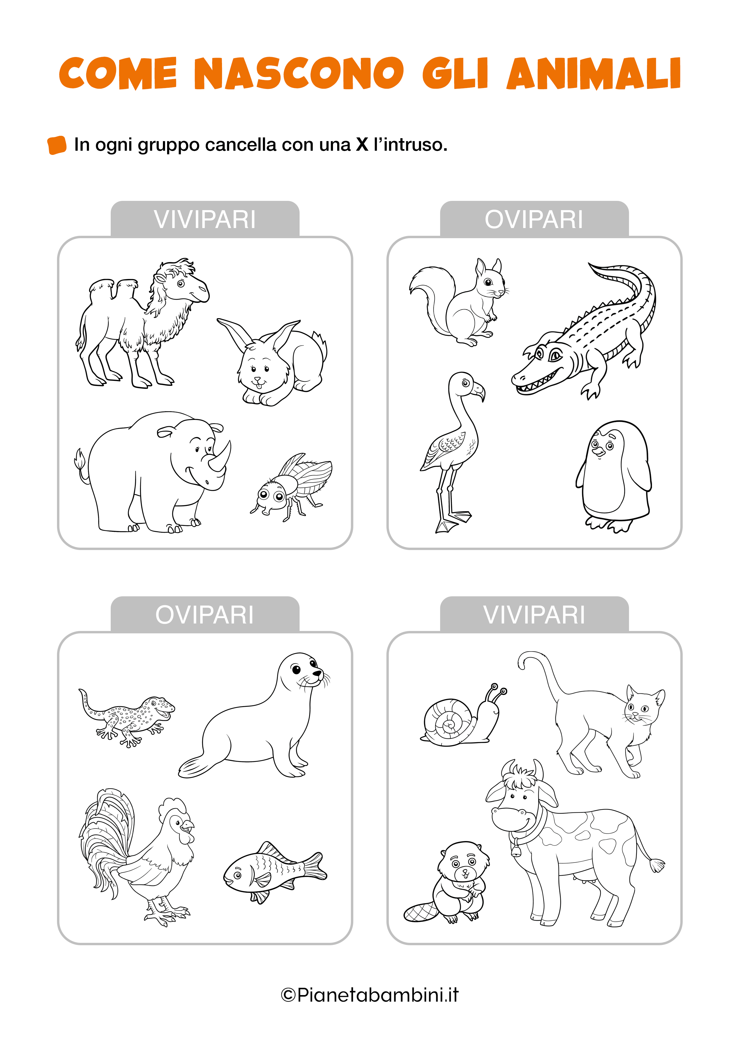 Gli esercizi sulla riproduzione degli animali vedranno i bambini impegnati proprio a collocare le diverse specie alla giusta classe di appartenenza in termini riproduttivi e, come sempre, sono a vostra disposizione per la stampa gratuita o la consultazione online.