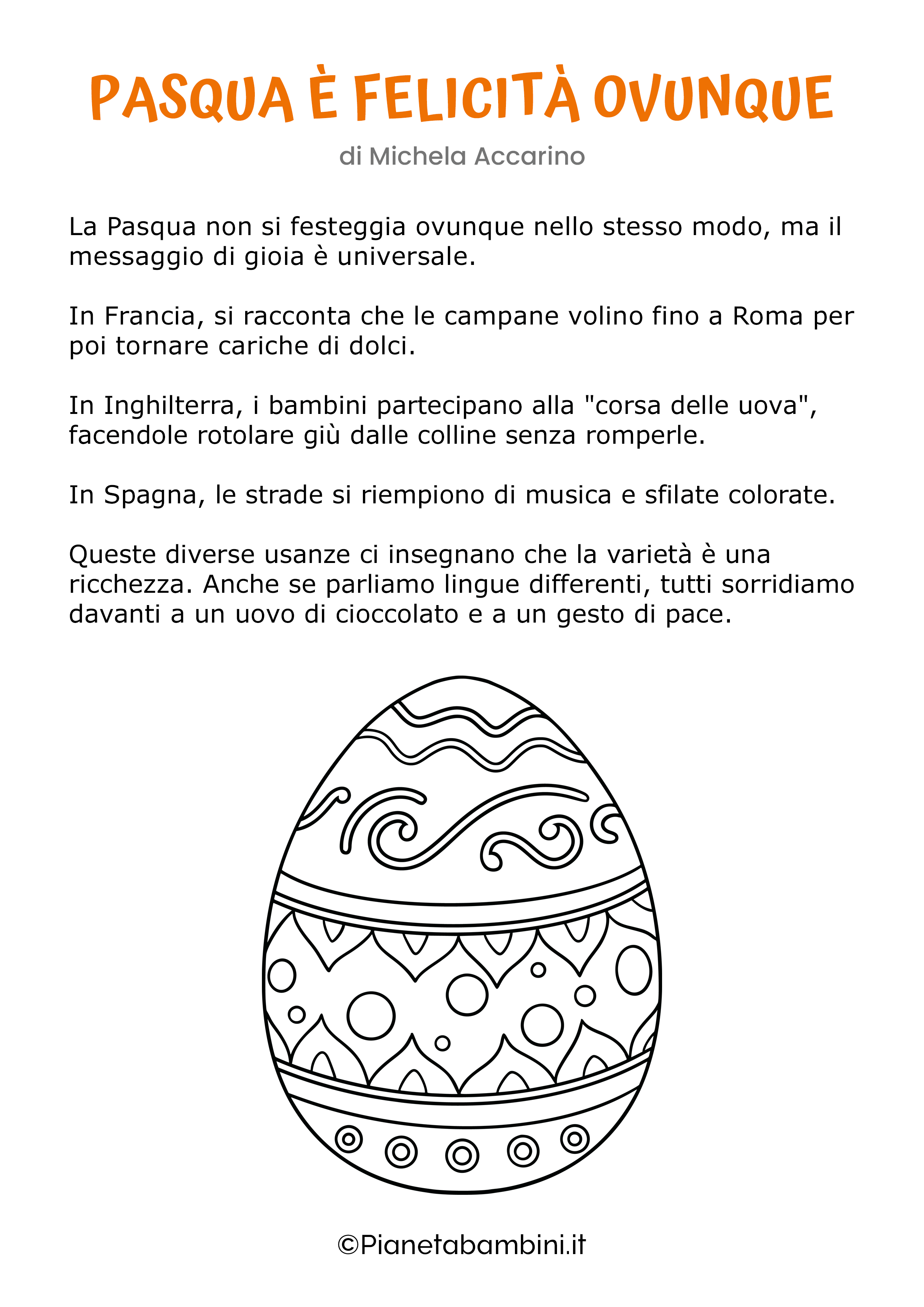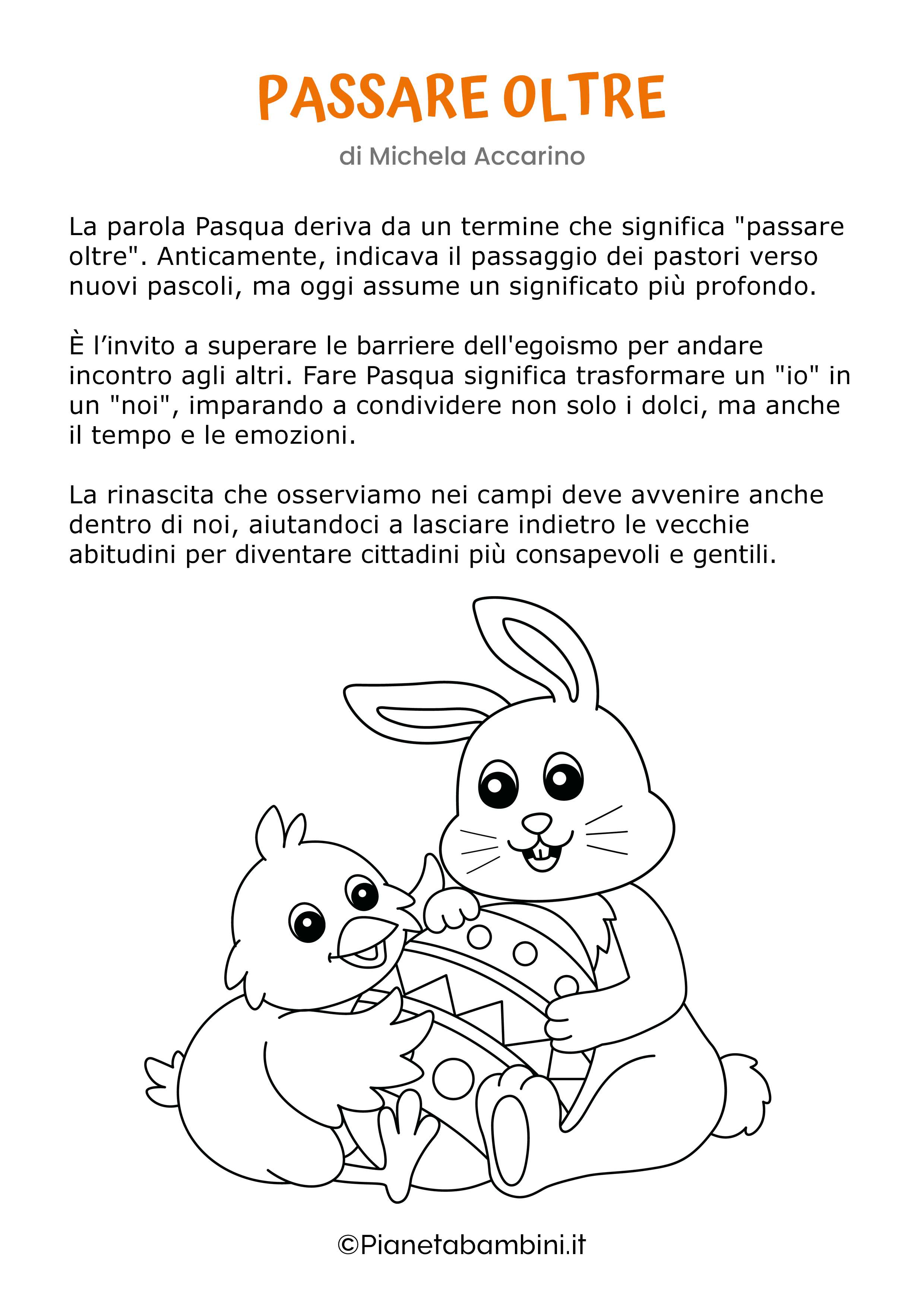 Continuiamo a occuparci di materiale letterario a tema pasquale da proporre ai bambini che frequentano la Scuola Primaria e, in particolare, andremo qui a presentarvi dei carinissimi dettati sulla Pasqua che potrete leggere comodamente online o, se lo desiderate, stampare gratuitamente.