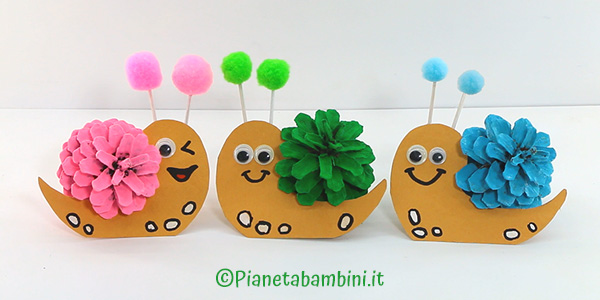 Un’esplosione di colore perfetto per celebrare l’arrivo della primavera… ecco la nostra idea per un lavoretto originale da realizzare utilizzando delle pigne e un cartoncino. Ci divertiremo a dare forma a delle simpaticissime chiocciole in tante tonalità differenti utilizzando proprio le pigne come conchiglia.