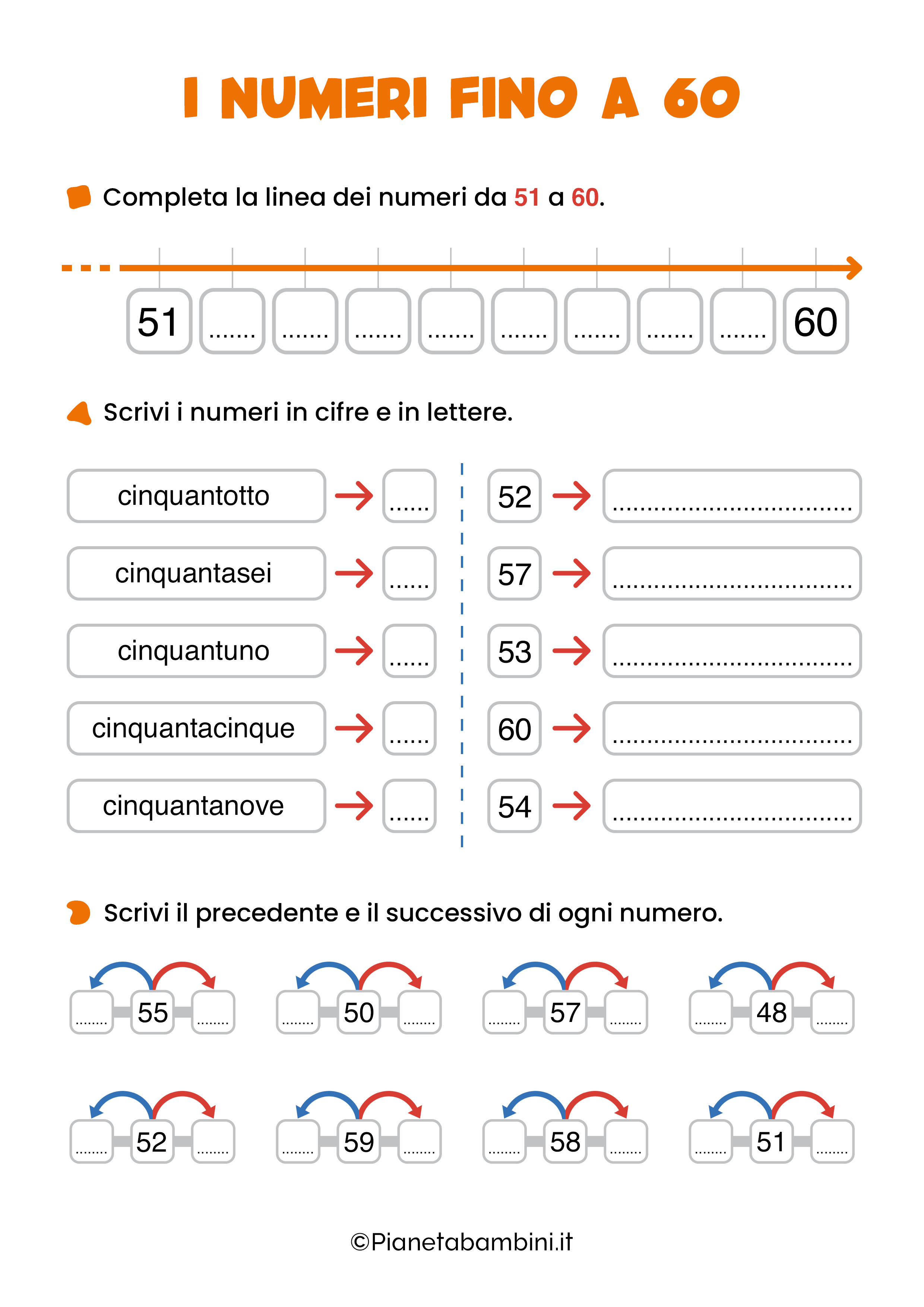 Schede sui numeri fino a 60 in PDF
