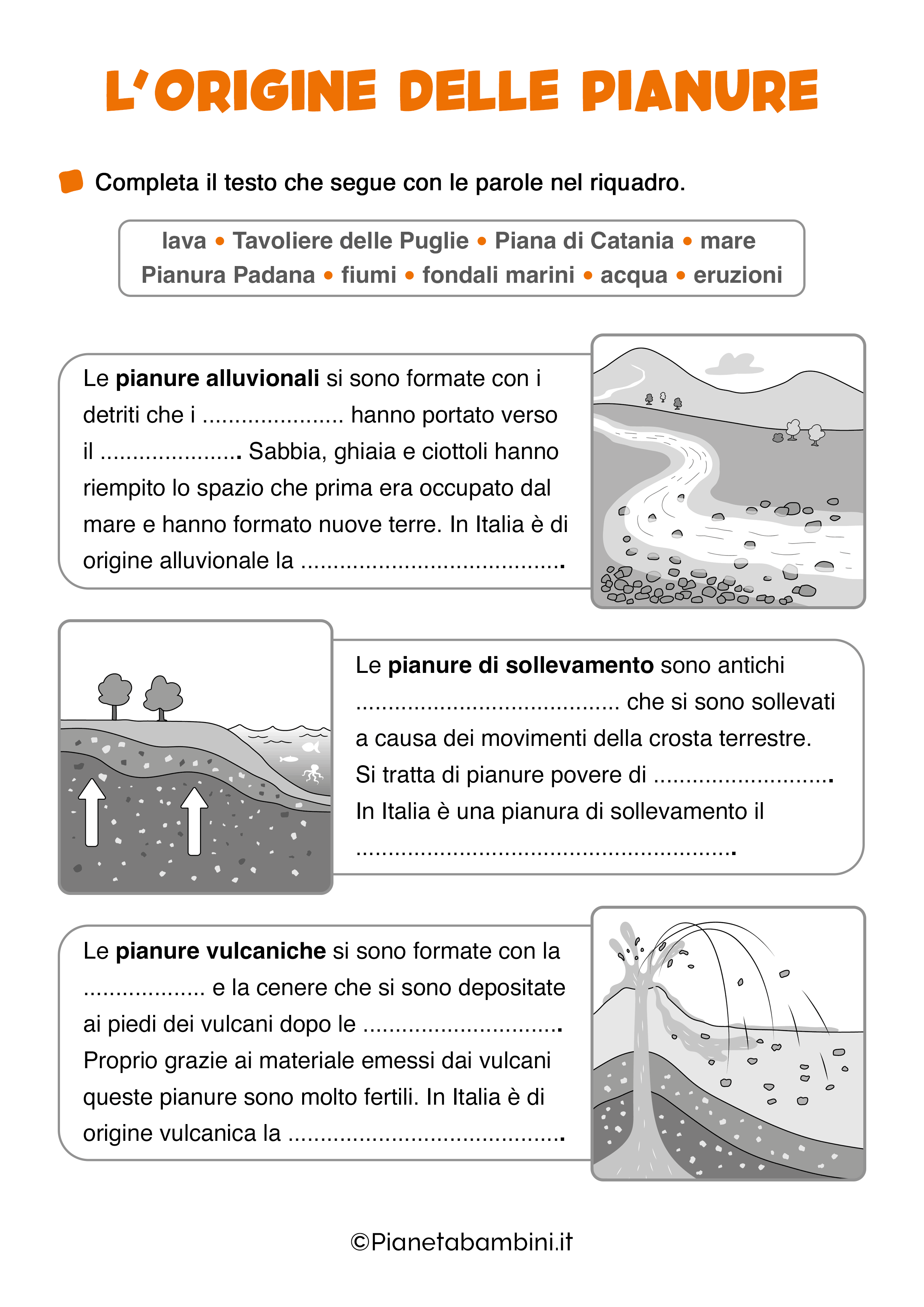 Schede didattiche sulla pianura da stampare singolarmente