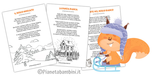 Infine, grazie alle immagini in anteprima che vanno a chiudere questo post, sarete liberissimi di procedere alla stampa gratuita dei singoli componimenti tra i 43 proposti, così da scegliere le poesie sulla neve che più vi piacciono e considerate più adatte ai vostri bambini.