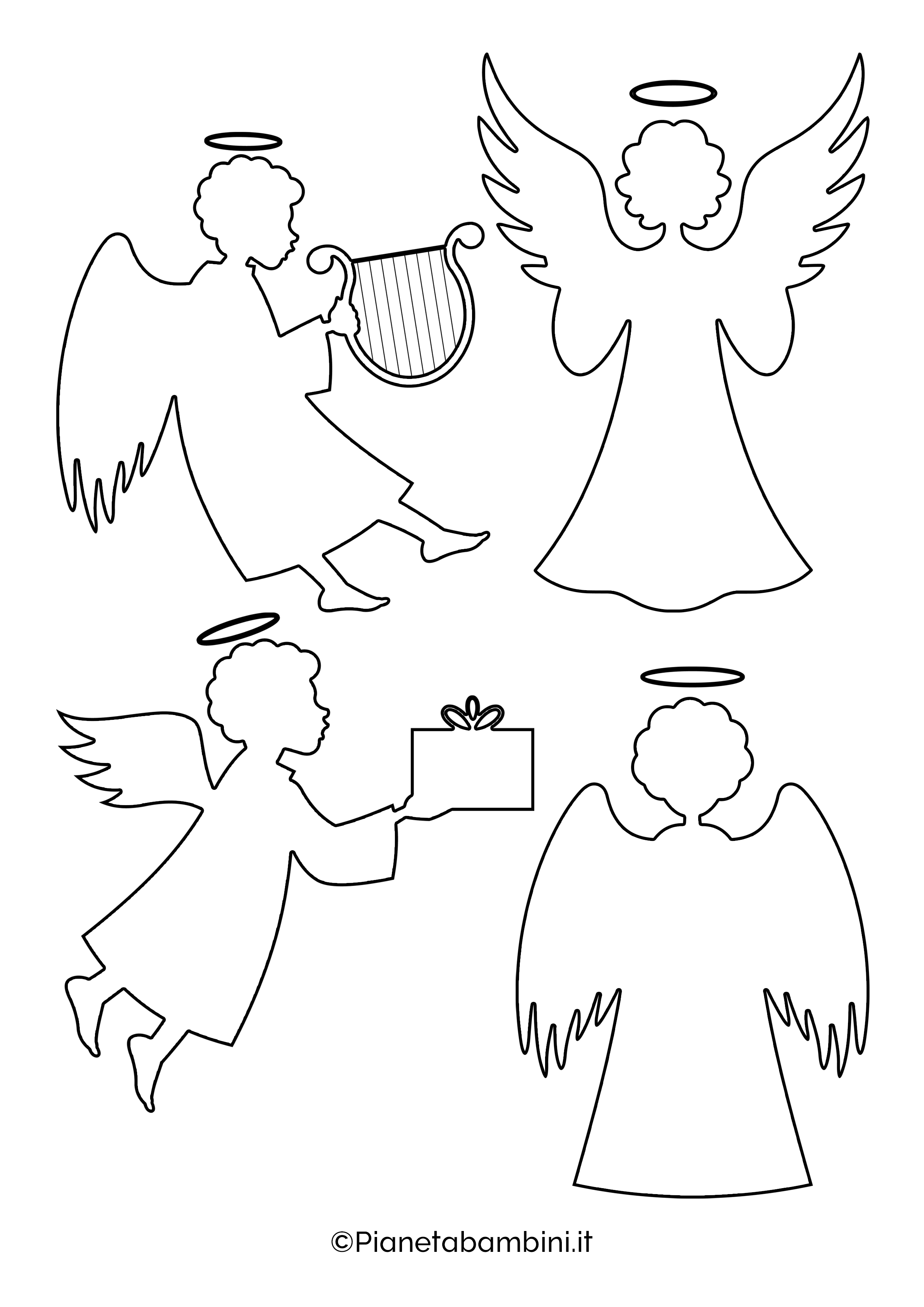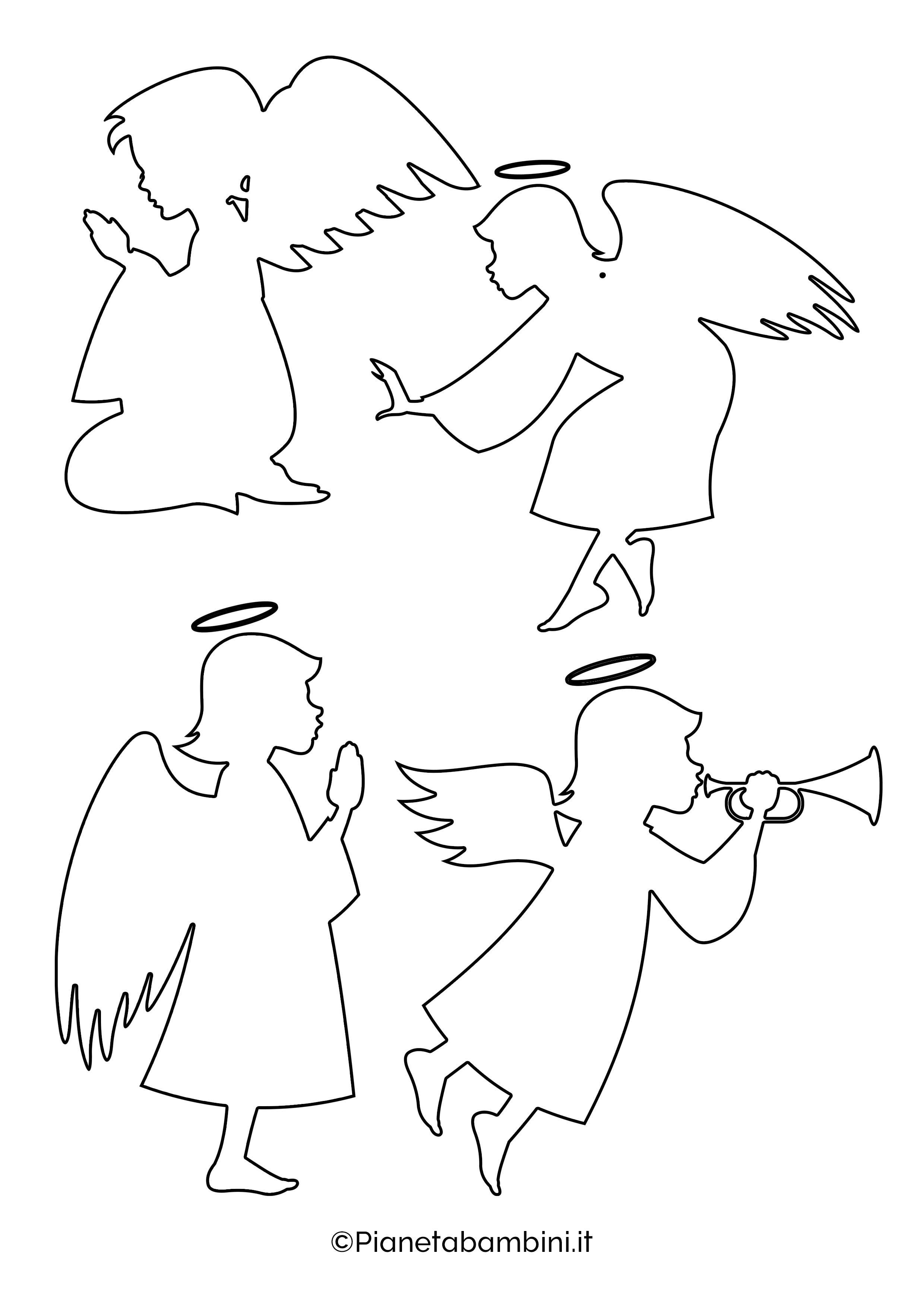 Utilissime per la creazione di addobbi, decorazioni e lavoretti, eccovi una raccolta di sagome che potremmo definire indispensabile in vista del Natale: stiamo parlando di sagome di angeli in diverse dimensioni e posizioni che potrete stampare e ritagliare in assoluta libertà.