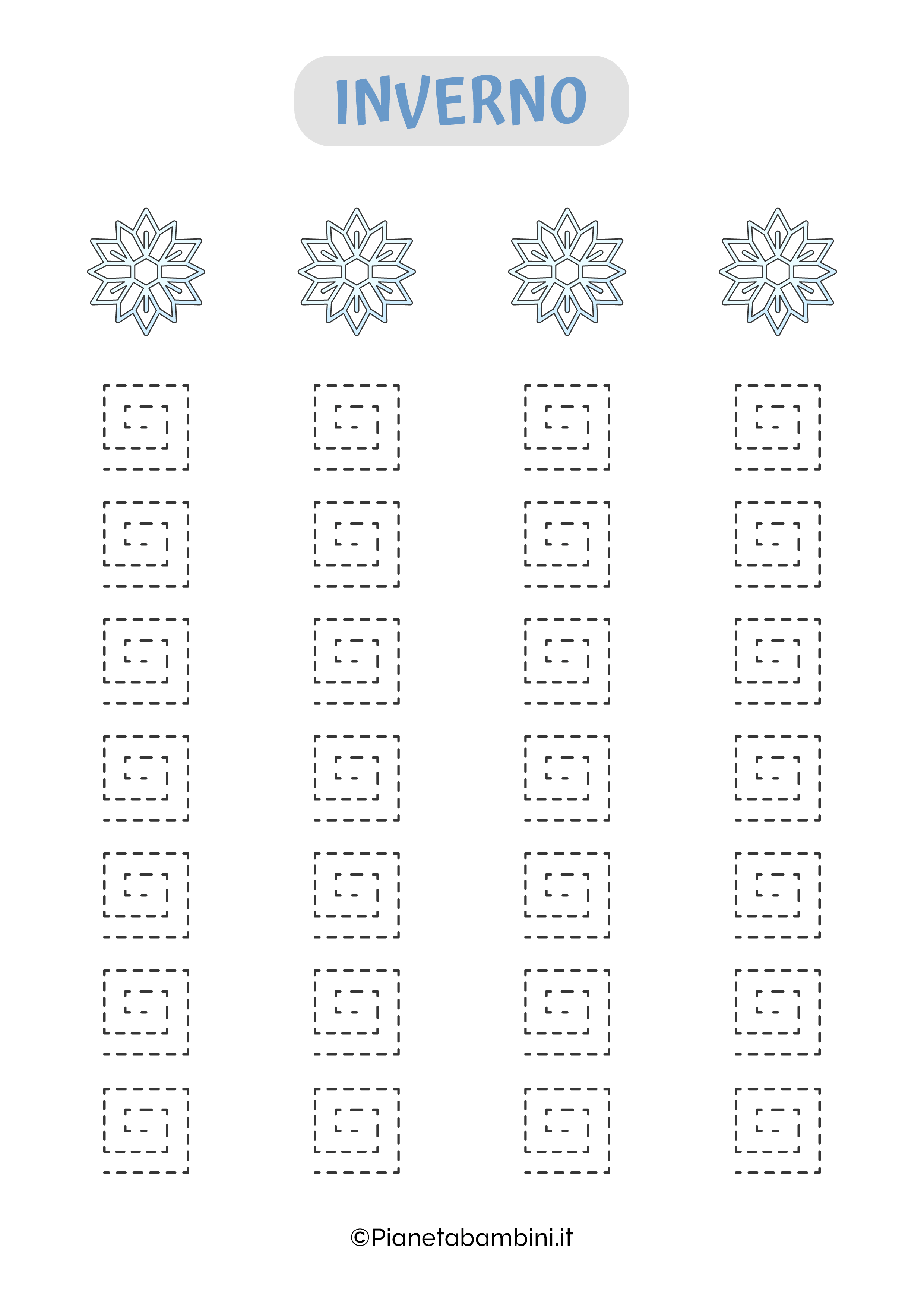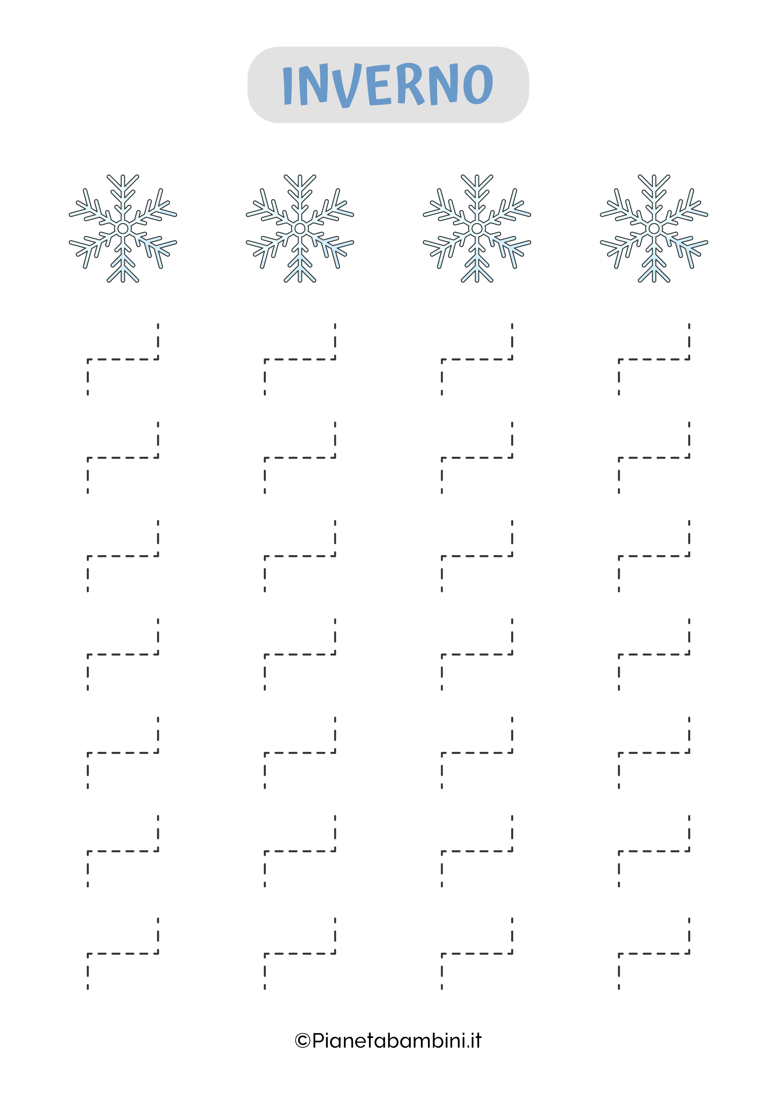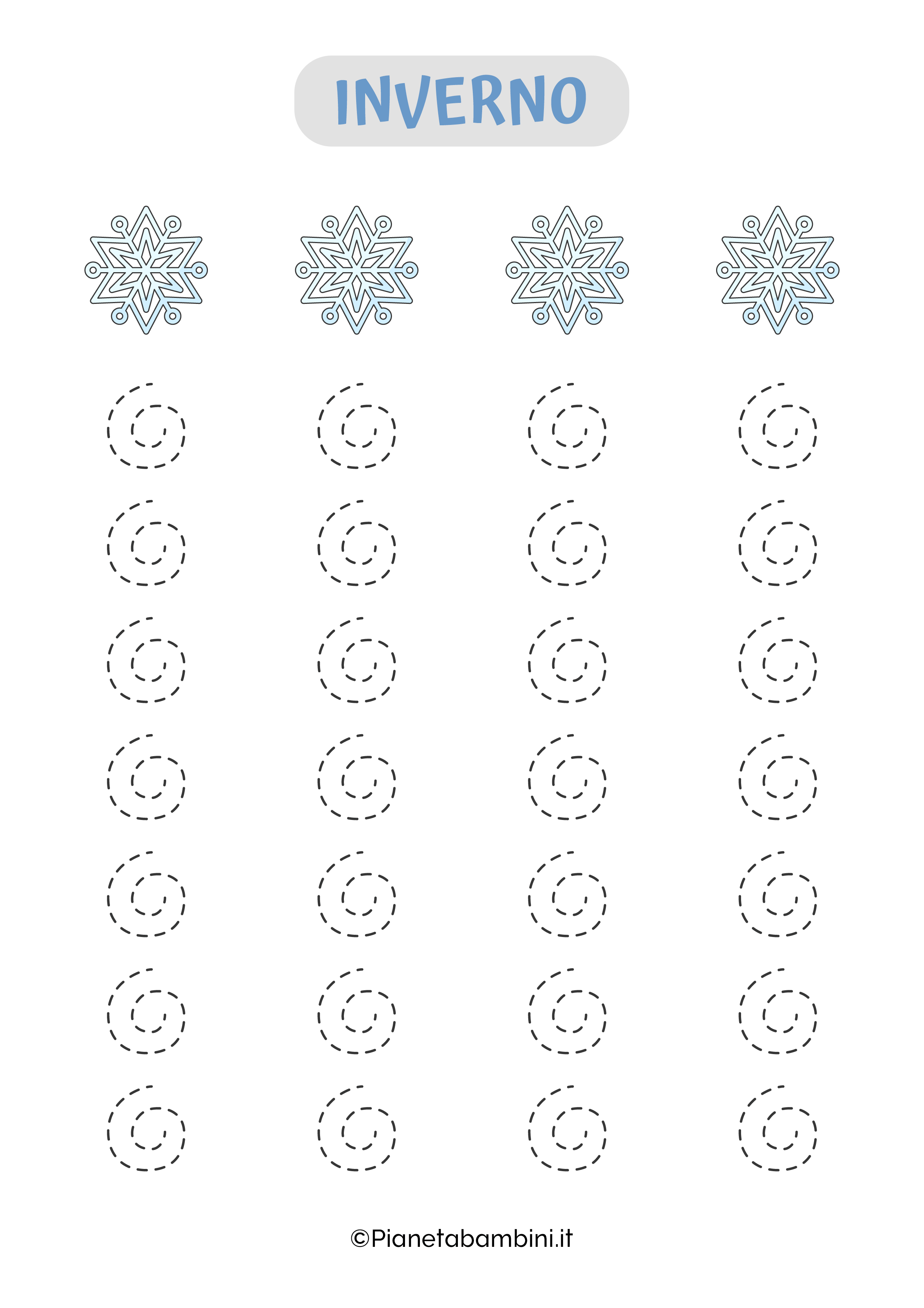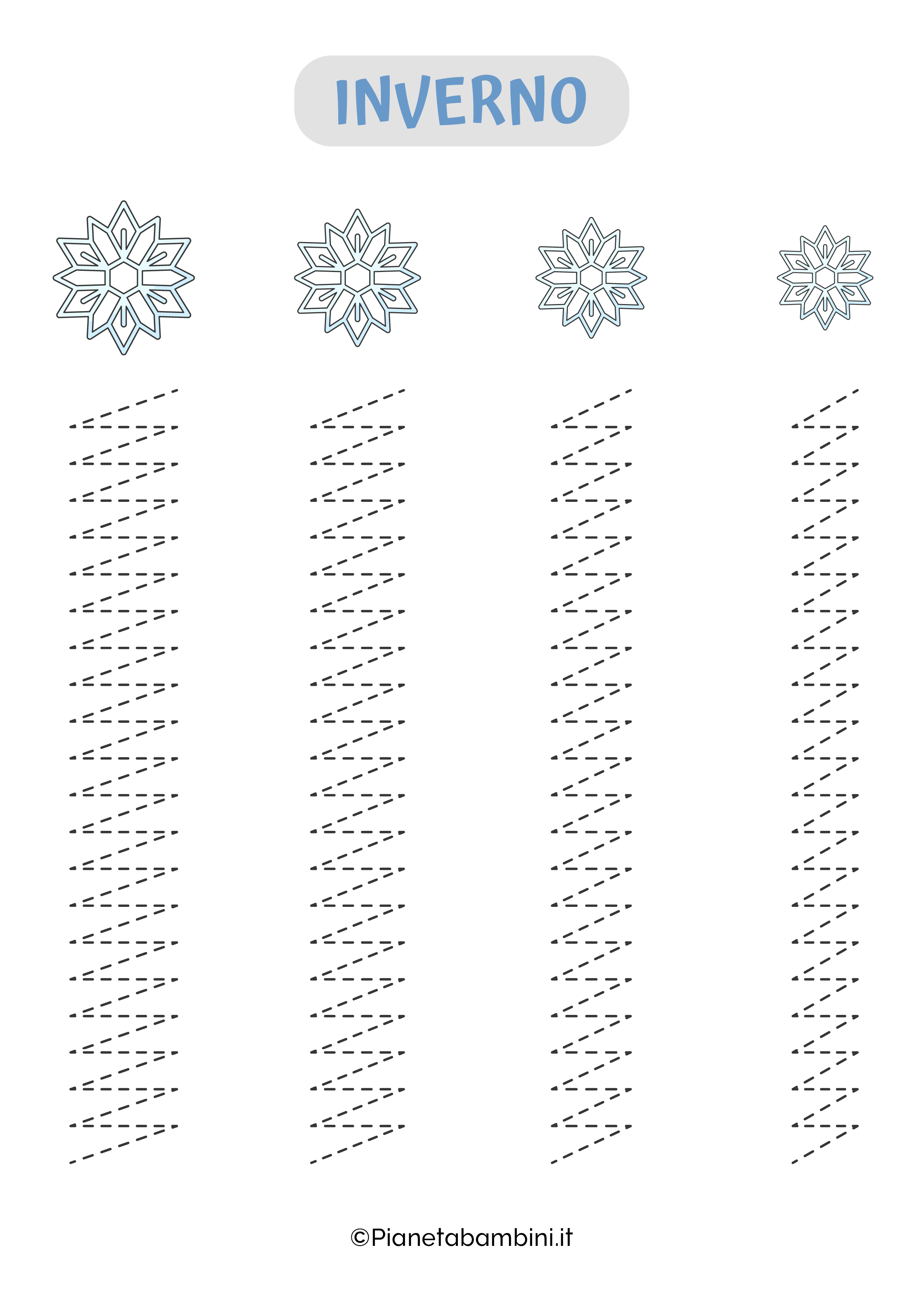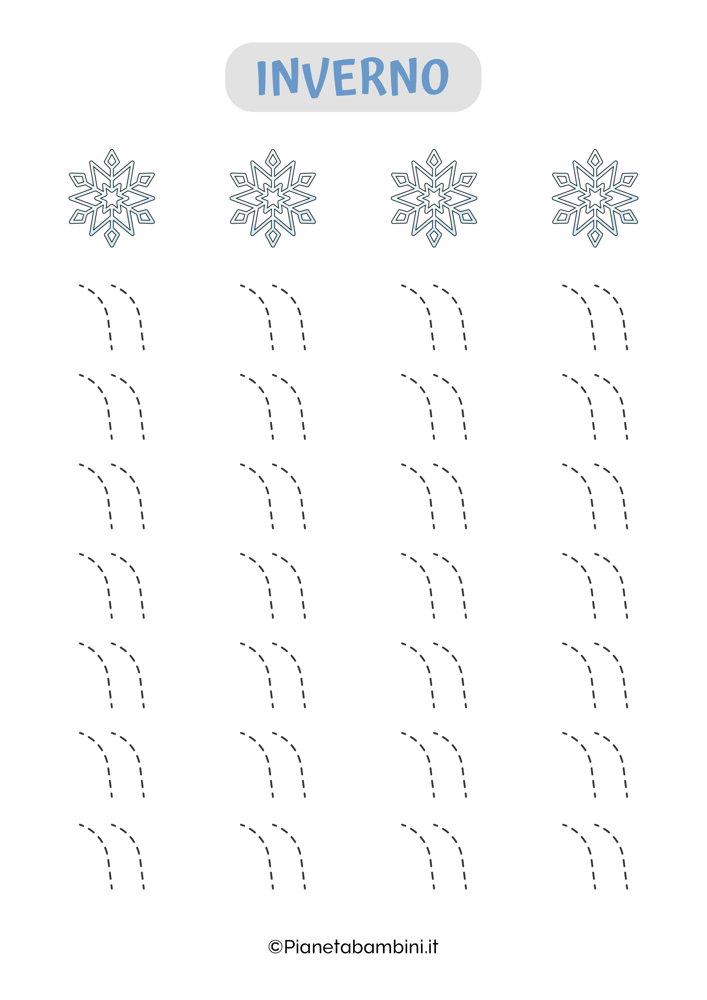 Proseguendo nella lettura avrete modo di scoprire nel dettaglio come procedere alla stampa gratuita delle schede di pregrafismo sull’inverno (singolarmente o simultaneamente) che potrete proporre ai vostri bambini sia a casa che a scuola invogliandoli all’apprendimento.