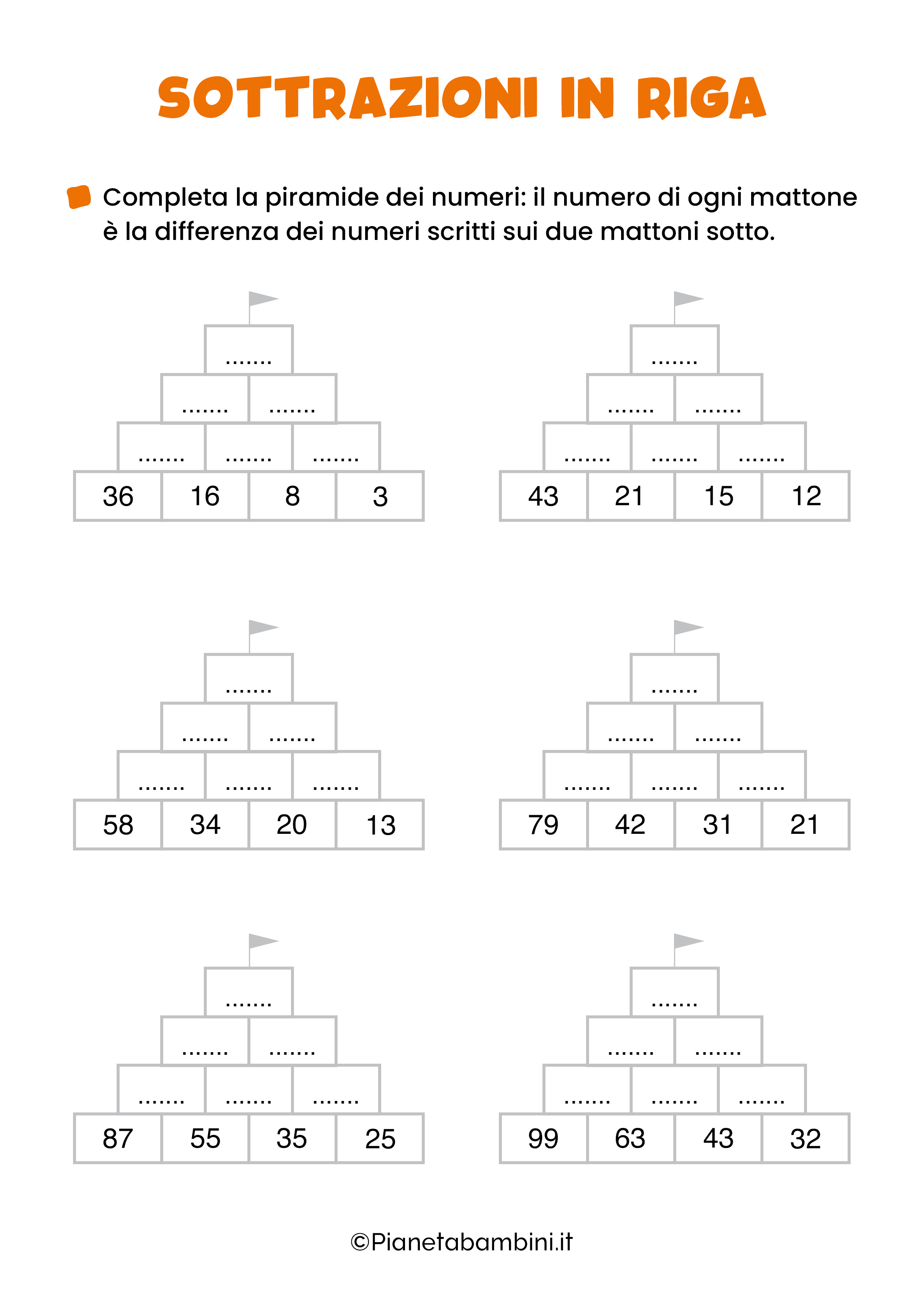 Schede sulle sottrazioni in riga in PDF