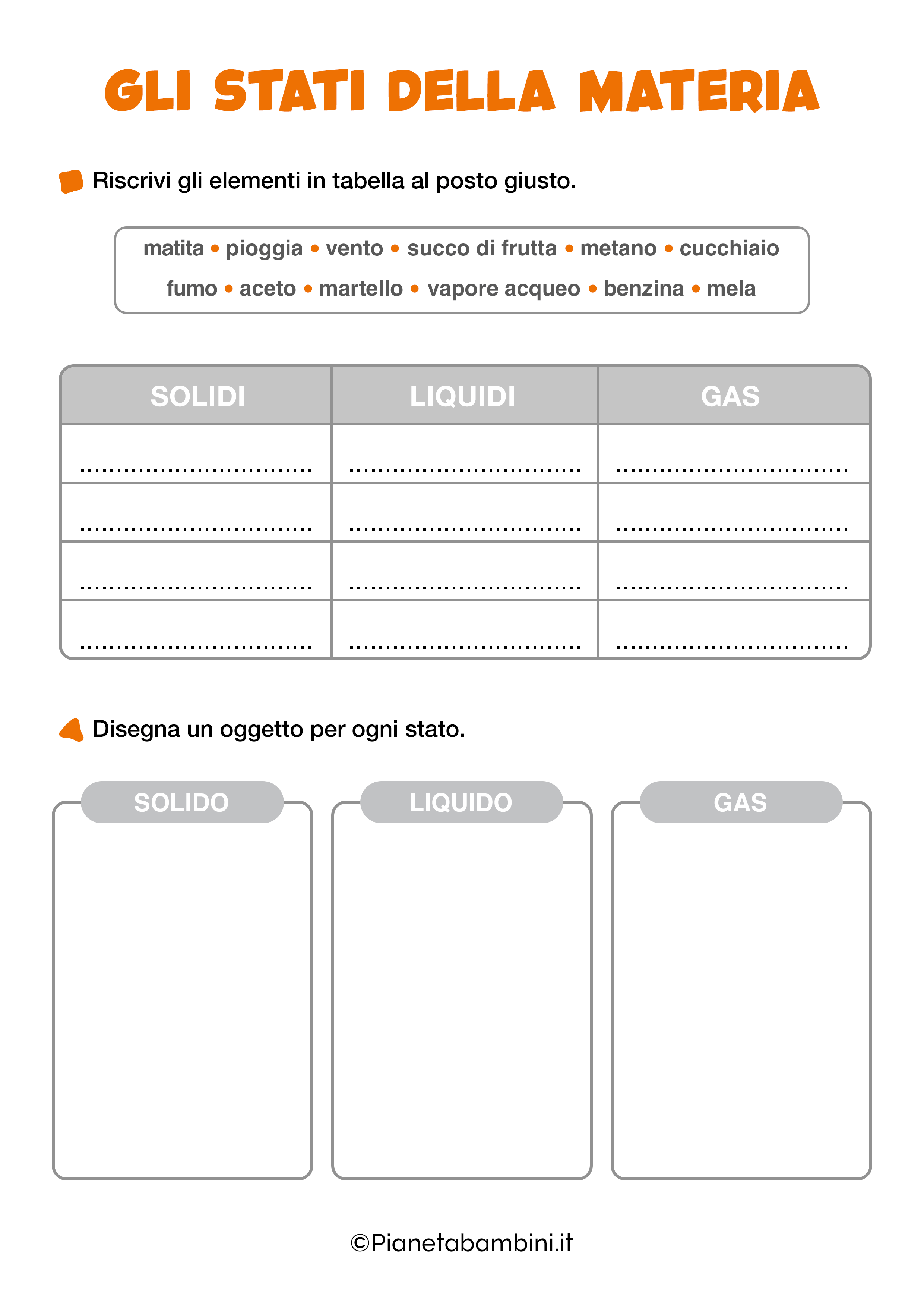 Guidiamo i bambini alla scoperta del mondo che li circonda iniziando proprio dal concetto di materia, vi state chiedendo come? Semplicemente utilizzando delle praticissime schede didattiche sugli stati della materia che qui avrete la possibilità di stampare gratis.